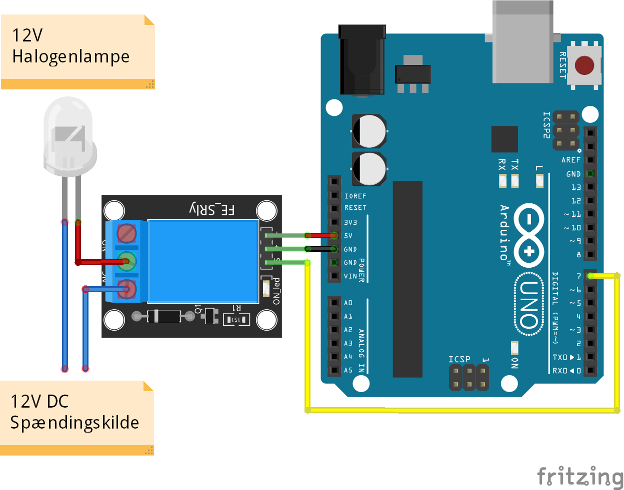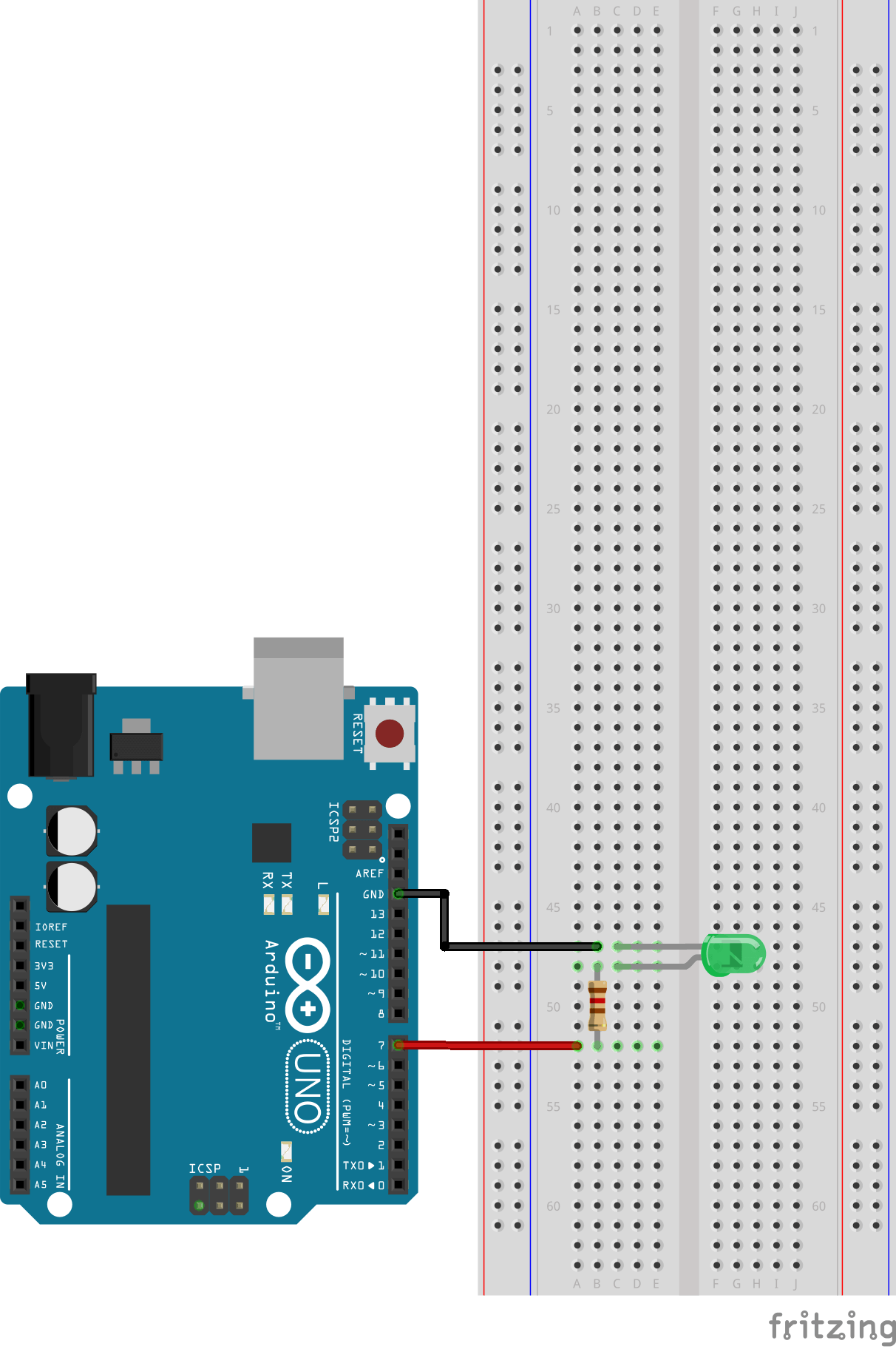 Forbind den digitale ’pin 7’ på Arduinoen til en række på fumlebrættet.