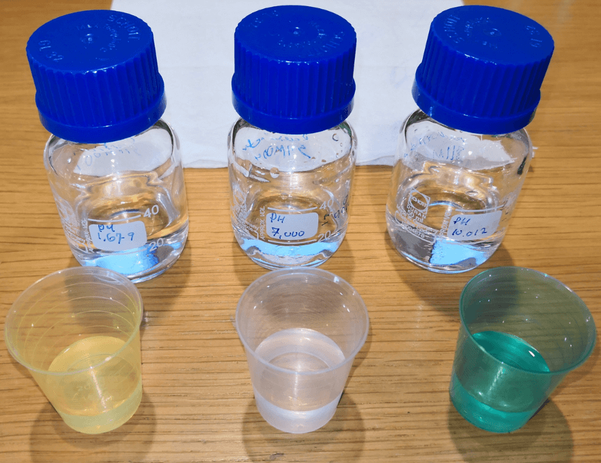 Øvelsesvejledning til at kalibrere et elektrisk pH-meter ved brug af et sæt reference buffer-opløsninger og en Arduino.